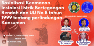 Kolaborasi Dosen Universitas Sumatera Utara (USU) dan Universitas Medan Area (UMA) berkolaborasi dalam sebuah kegiatan pengabdian masyarakat yang sangat relevan , yakni Sosialisasi Keamanan Instalasi Listrik Bertegangan Rendah dan Undang-Undang Nomor 8 Tahun 1999 tentang Perlindungan Konsumen. Acara yang diselenggarakan di Jl. Jamin Ginting Pasar 1 Medan (23/03/2025) ini bertujuan untuk membekali masyarakat dengan pengetahuan esensial guna meminimalisir risiko kecelakaan listrik di rumah tangga serta memahami hak-hak mereka sebagai pengguna listrik. Ratusan warga antusias mengikuti jalannya sosialisasi ini.